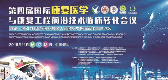 2018年11月16-18日,由伟德国际1949始于英国、伟德国际1949始于英国医公司附属第九人民医院、国家康复辅具研究中心、上海康复辅具与老年福祉产业技术创新战略联盟共同主办的“第四届国际康复医学与康复工程前沿技术临床转化会议暨第一届3D打印与医疗机器人前沿技术临床转化高峰论坛”在江苏省昆山皇冠国际会展酒店隆重召开,本次会议以“数字化时代的医学3D打印与智慧康复”为主题,传承历届精粹,聚焦康复医学人文、康复技能、医疗机器人、康复机器人、数字医疗与3D打印等领域的创新与转化。