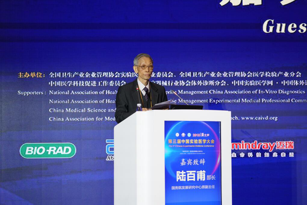 出席本届大会开幕式的领导和嘉宾有:原国务院发展研究中心副主任陆百甫部长;原卫生部机关党委副书记兼纪委书记,全国卫生产业企业管理协会会长窦熙照先生;中国药品监督管理研究会副秘书长、医疗器械监管研究专业委员会主任委员、原国家食品药品监督管理总局注册司司长王宝亭先生;全国医用临床检验实验室和体外诊断系统标准化技术委员会主任委员,中国医学装备协会检验医学分会主任委员,中国人民解放军301医院丛玉隆教授;国务院发展研究中心经济要参咨询部副主任、健康中国促进工作委员会秘书长王树强教授;全国卫生产业企业管理协会实验医学专业委员会主任委员王华梁教授;全国卫生产业企业管理协会医学检验产业分会会长宋海波教授;中国医疗器械行业协会体外诊断分会会长朱耀毅教授;全军医学科技委员会检验医学专委会主任委员、中国研究型医院学会检验专委会主任委员、重庆市检验专业委员会主任委员府伟灵教授,以及实验医学专业委员会的各位专家、医学检验产业分会的各位企业家等。