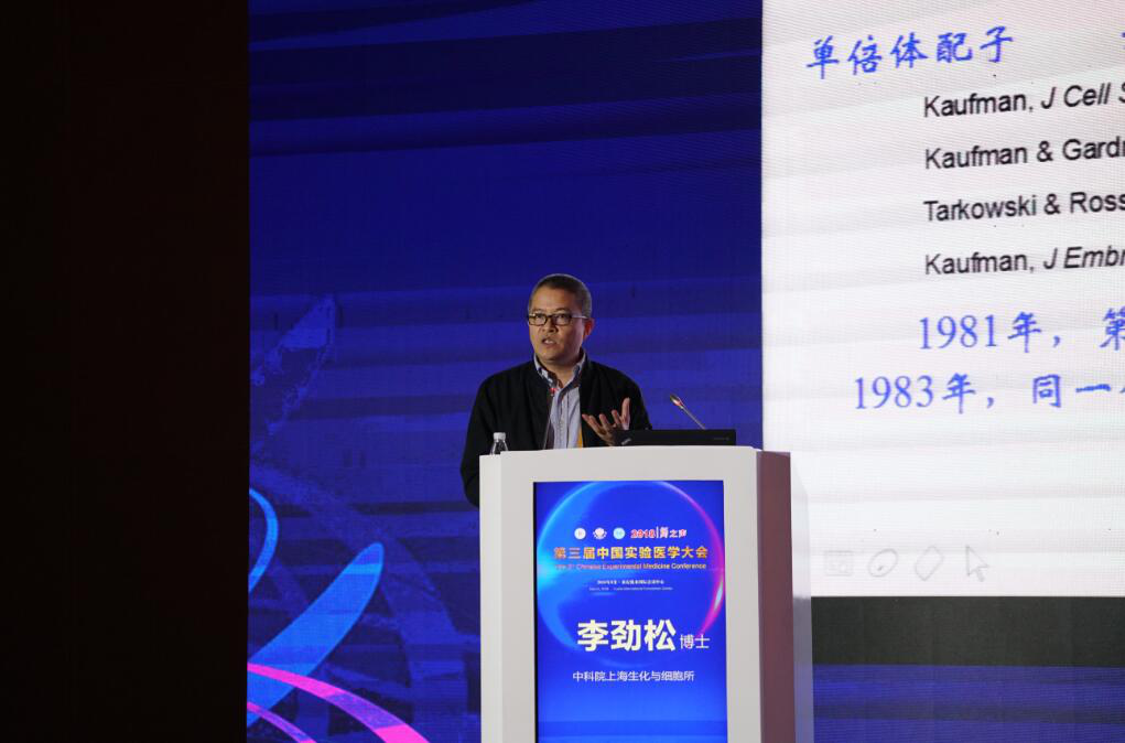 来自生物化学与细胞生物学研究所的李劲松教授就“人造精子”介导的基因编辑发表了精彩演讲。介绍完DNA测序和干细胞技术之外,李教授着重介绍了“人造精子”介导半克隆技术的科学依据和应用,并预言“人造精子”的建立将大大促进生命科学的研究。