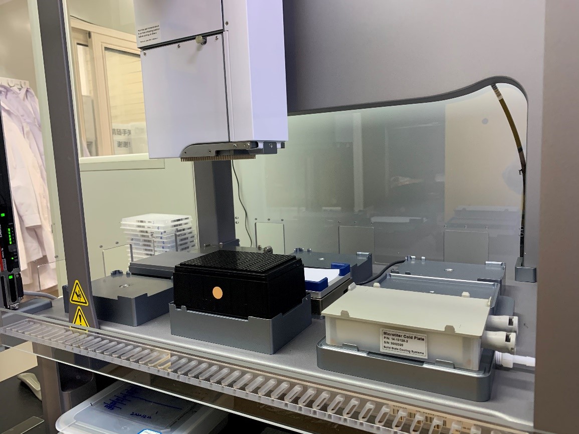 介绍:液体自动化工作站主要用于384高通量移液平台的购置,实现微量样本(0.1-1μL)且大样本量(>1000例)的MALDI点样;自动化工作站不仅可以用于MALDI点板,还可轻松精准地完成移液、梯度稀释、分液以及合并液体等液体处理工作,被广泛应用于生物工程、DNA质粒纯化、药物筛选、ELISA反应、PCR前处理、DNA测序处理、临床检验样品处理及血站系统高通量样品分析工作。其自动化的操作过程可有效减少人为操作的误差,提高实验的重复性,降低液体处理等工作中的样品处理成本。