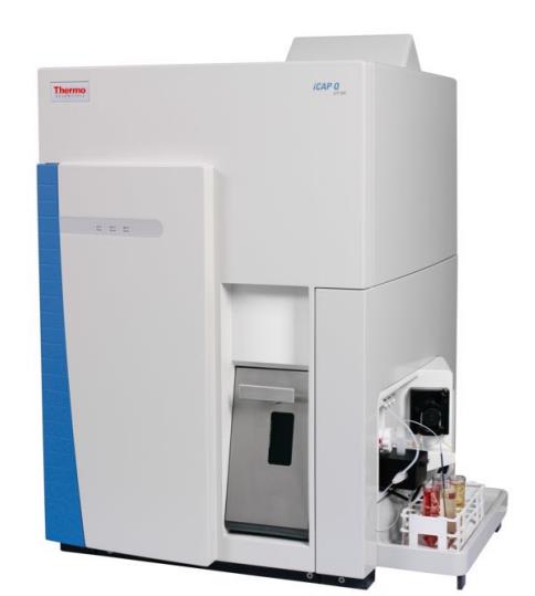 ICP-MS是一种将ICP技术和质谱技术结合在一起的分析仪器。在ICP-MS中,ICP起到离子源的作用,高温的等离子体使大多数样品中的元素都电离出一个电子而形成了一价正离子。质谱是一个质量筛选器,通过选择不同质核比(m/z)的离子通过并到达检测器,来检测某个离子的强度,进而分析计算出某种元素的强度。它的高端型号可以同时测量周期表中大多数元素,测定分析物浓度可低至纳克/升(ng/l)或万亿分之几(ppt)的水平。