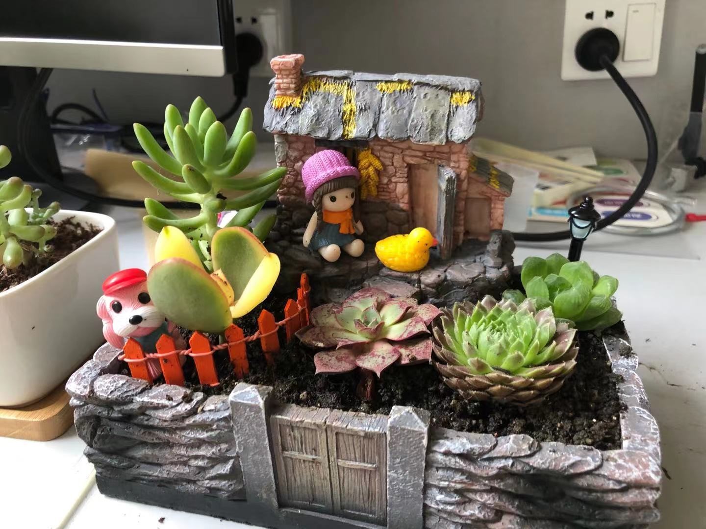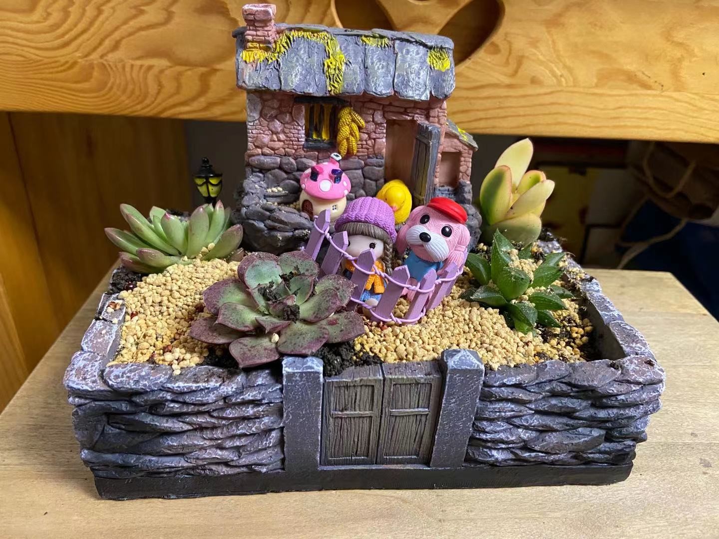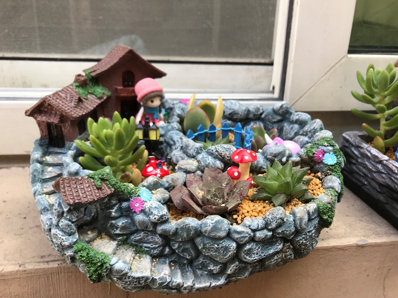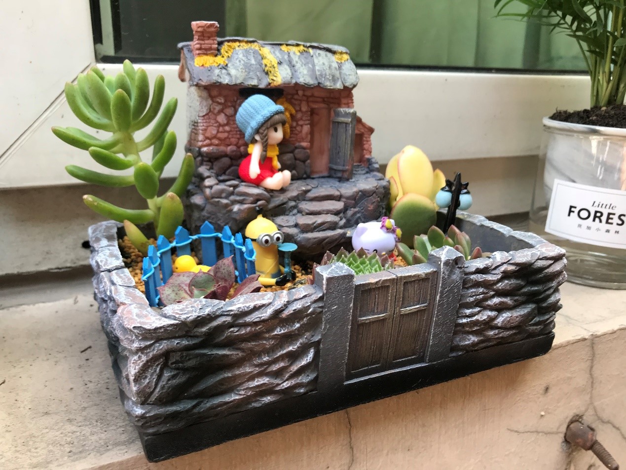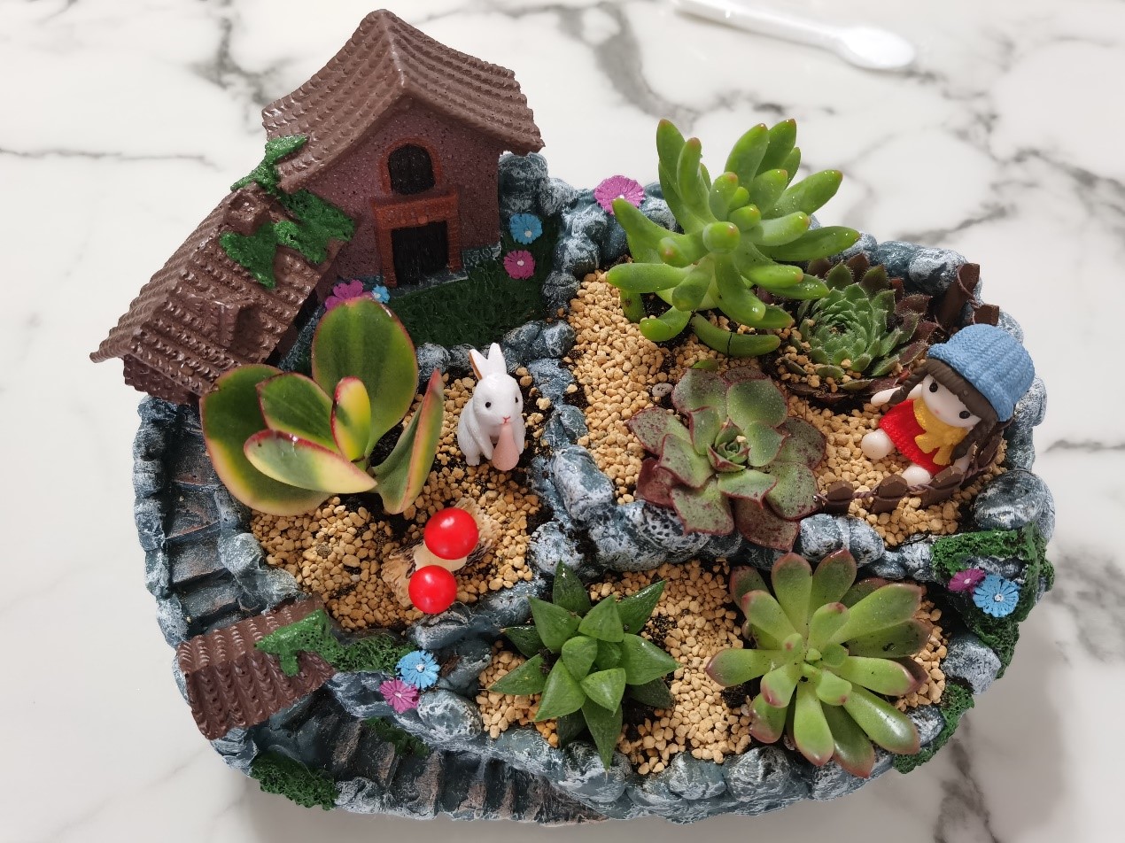 多肉植物种类繁多,有晶莹剔透的玉露、典雅高贵的紫珍珠,还有手指样的小多肉等等。园艺老师耐心地讲解多肉的种类,以及如何浇水、养护,孩子们一边听讲,一遍实践,兴致勃勃地参与到盆栽制作的每个环节。孩子们掌握了将多肉植物移植到各式各样俏皮可爱的花盆房里,并搭配上装饰品。这样一个个赏心悦目的趣味盆栽便映入眼帘,快来看看小生医工人的作品吧!