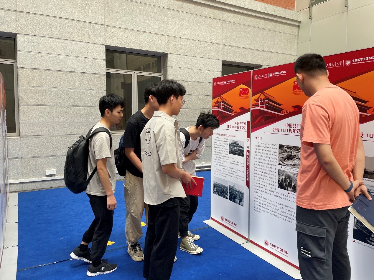 最后,支部全体成员参观设在文选医学大楼大厅的“生命笃行、医心为民、工助健康”纪念中国共产党建党100周年展。同志们学习党史、了解专业,进一步明确一名生医工人的使命责任,助力健康中国,为实现中华民族伟大复兴的中国梦而努力奋斗!