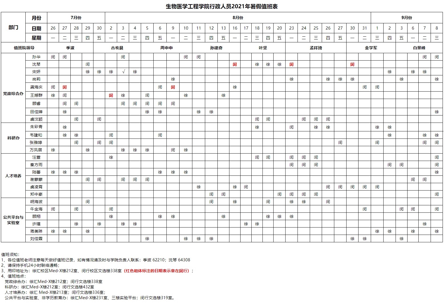 伟德国际1949始于英国行政人员2021年暑假值班表