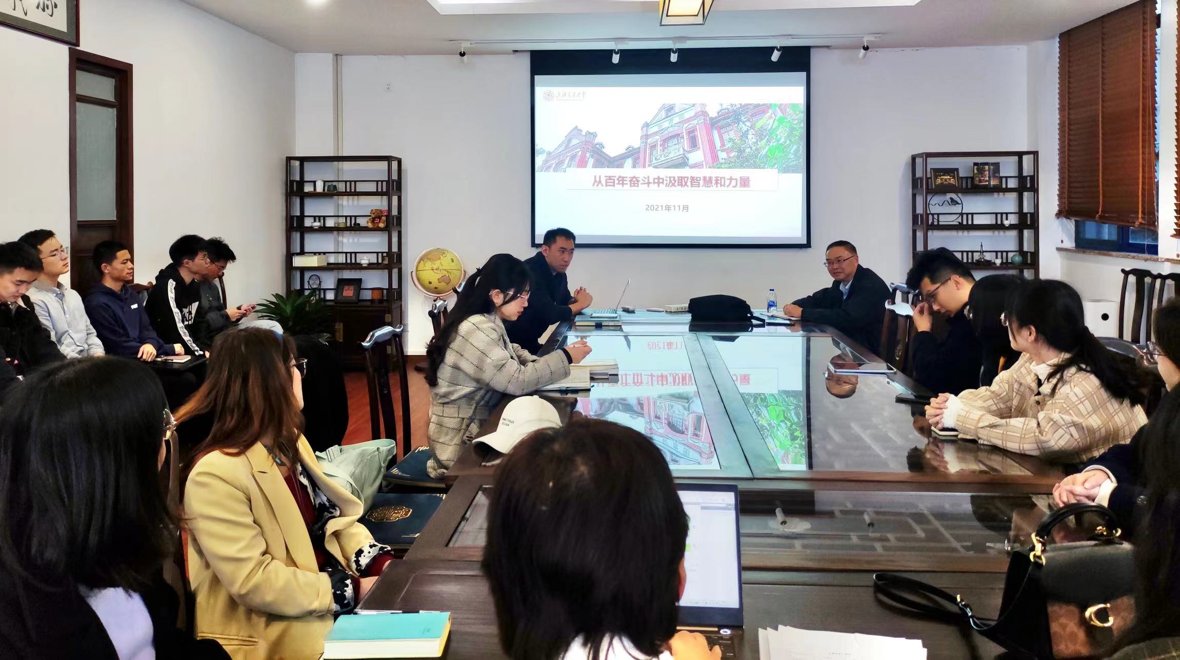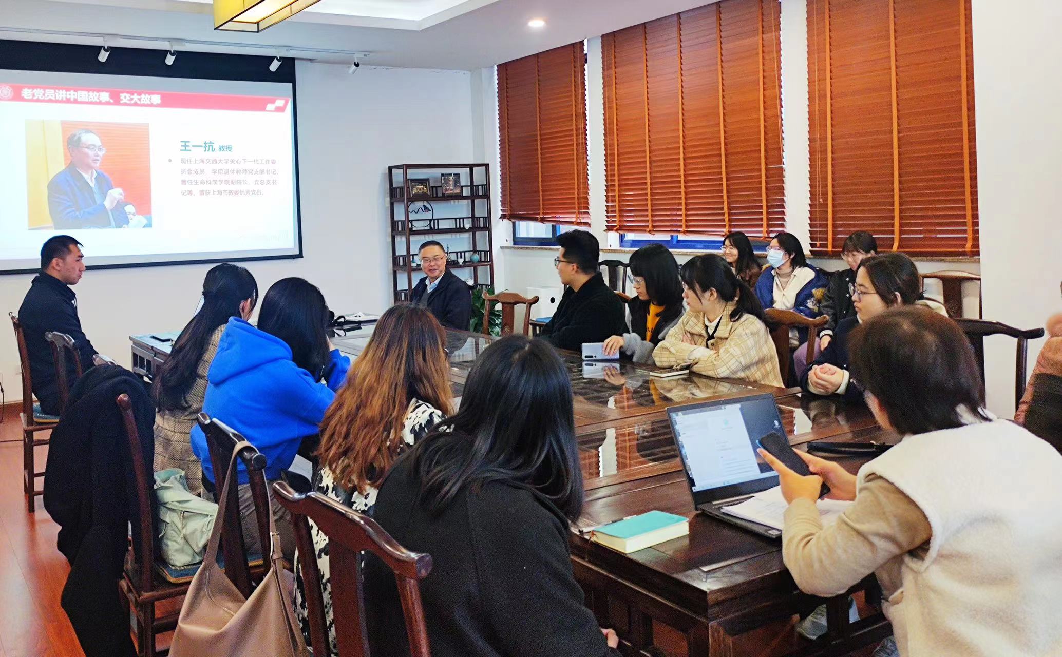 为庆祝中国共产党百年华诞,深入学习贯彻习近平总书记在庆祝中国共产党成立100周年大会上的重要讲话精神扎实开展党史学习教育,充分发挥“五老”亲历者、见证者、实践者的优势,教育引导广大青年员工从党的百年伟大奋斗历程中汲取继续前进的智慧和力量,感悟革命先辈和交大楷模的初心与使命。11月26日下午四点,原生命科学公司副经理、党总支书记王一抗在徐汇校区medx研究院一楼会议室以“传承红色基因,赓续红色血脉”为题向2021级新生党员同学授课。活动由思政教师郑中豪主持。