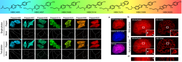 构建具有波长范围广、荧光亮度高、光稳定性优异的荧光探针,为生物体的高精度荧光成像提供可视化工具