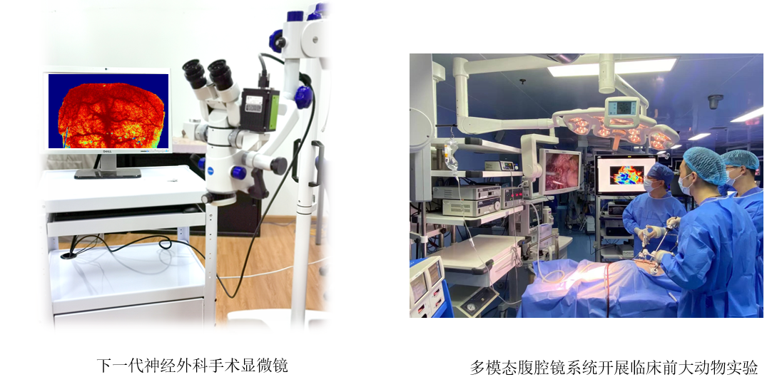 (2) 介观无标记血流血氧成像: 自主研发了具备无造影剂血流成像功能的神经外科手术显微镜;研发了具备ICG荧光和激光散斑成像的多模态腹腔镜产品。