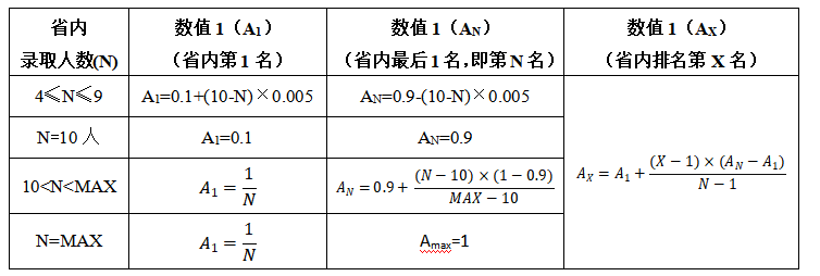 l 当某省在工科试验班(信息类)录取人数少于3人(含3人)时,按下表折算数值1