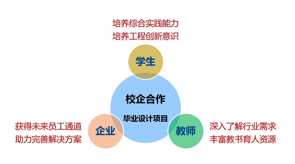 公司自2021年起对本科毕业设计增设校企合作项目。项目由企业提出需求并提供资助,每个项目由 2-3 名员工合作完成。员工团队在企业导师与校内导师的共同指导下协作完成项目,培养员工在实践中发现真问题、真正解决问题的能力,以及员工团队合作精神。
