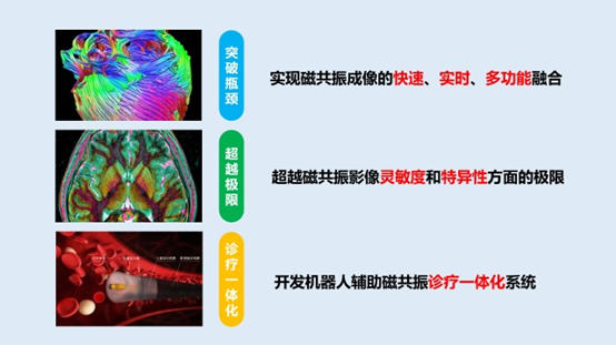 中心聚焦磁共振诊疗一体化高端装备,以聚集全球磁共振创新资源,发展产业技术体系,构建创新合作机制,提升支撑保障能力,建设具有自主知识产权的新型高端医学诊疗装备产学研用一体化创新基地为主要建设目标。围绕实时磁共振、磁共振兼容医疗机器人与材料、磁共振导航介入、磁共振纳米诊疗材料以及多模态磁共振等领域开展关键技术攻关,推动产业共性技术发展,提升产品关键部件研发能力,助力肿瘤、心血管、脑等重大疾病的临床精准诊疗,提升我国磁共振高端医疗诊疗装备产业核心竞争力。