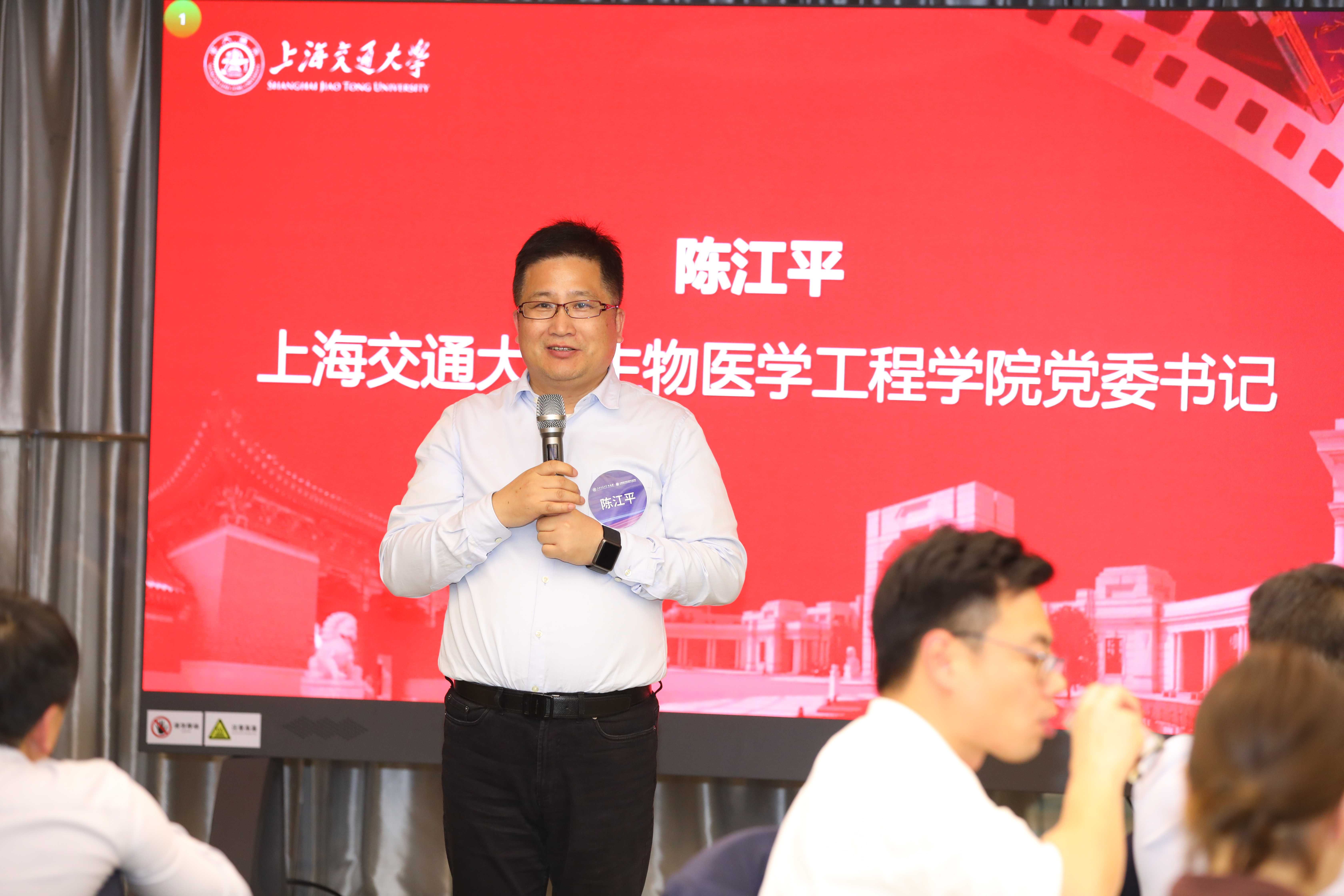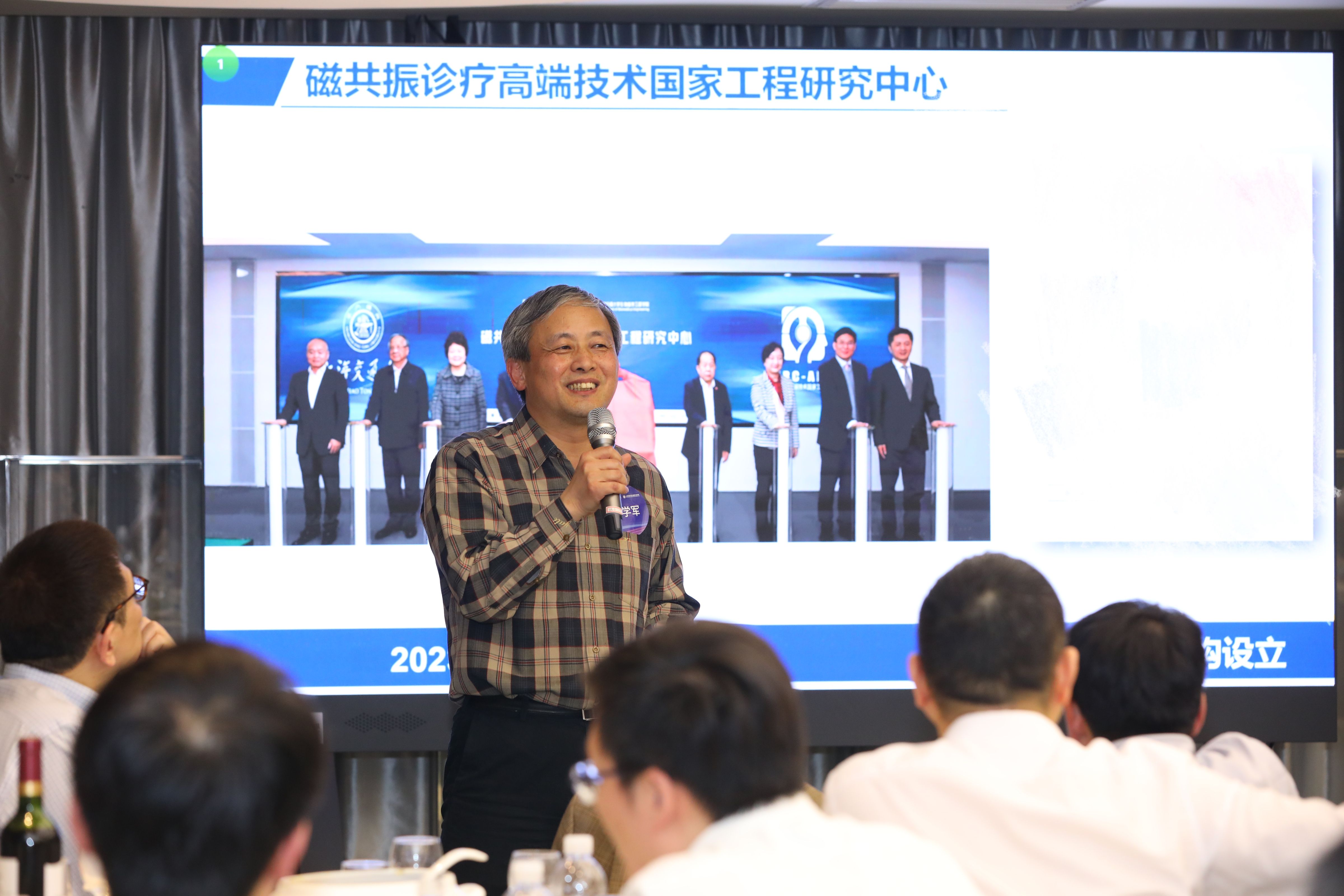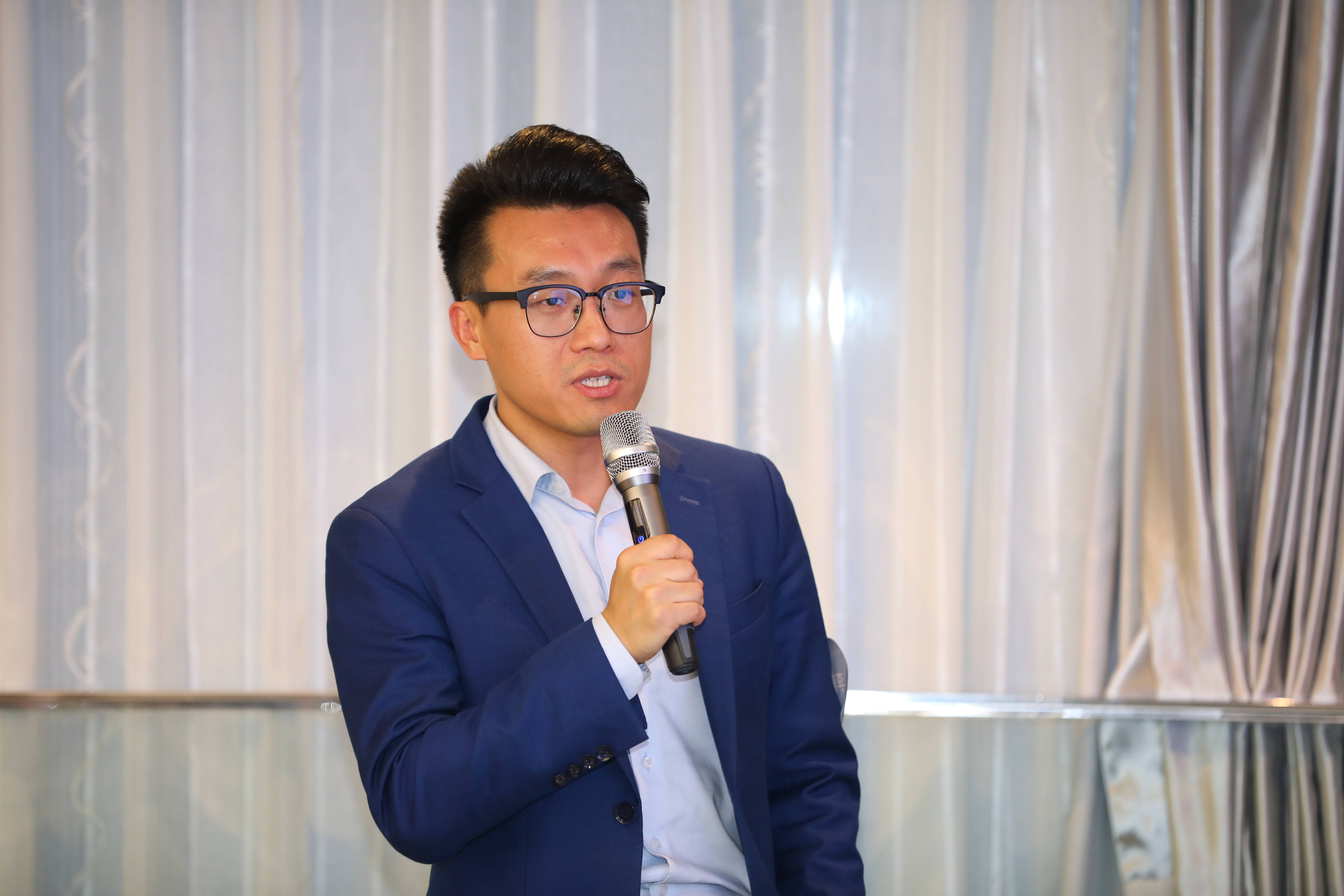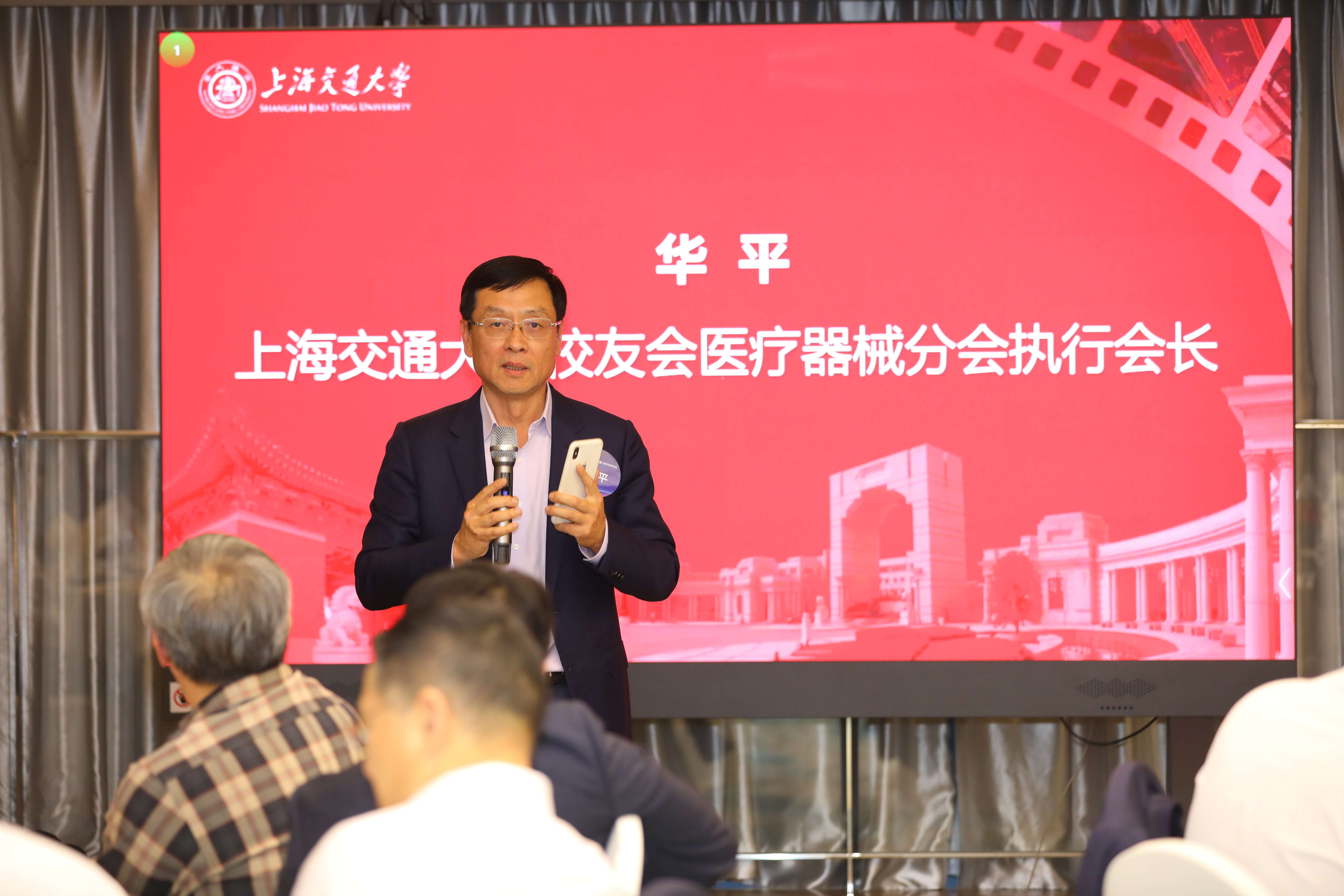 上海交大员工会医疗器械分会执行会长华平学长发表讲话。他表示此次晚宴旨在加强员工间的联系与交流,共谋医疗器械领域的发展与合作,希望未来分会能作为员工产业转化的重要平台,与公司各级部门加深合作,促进员工的事业发展。