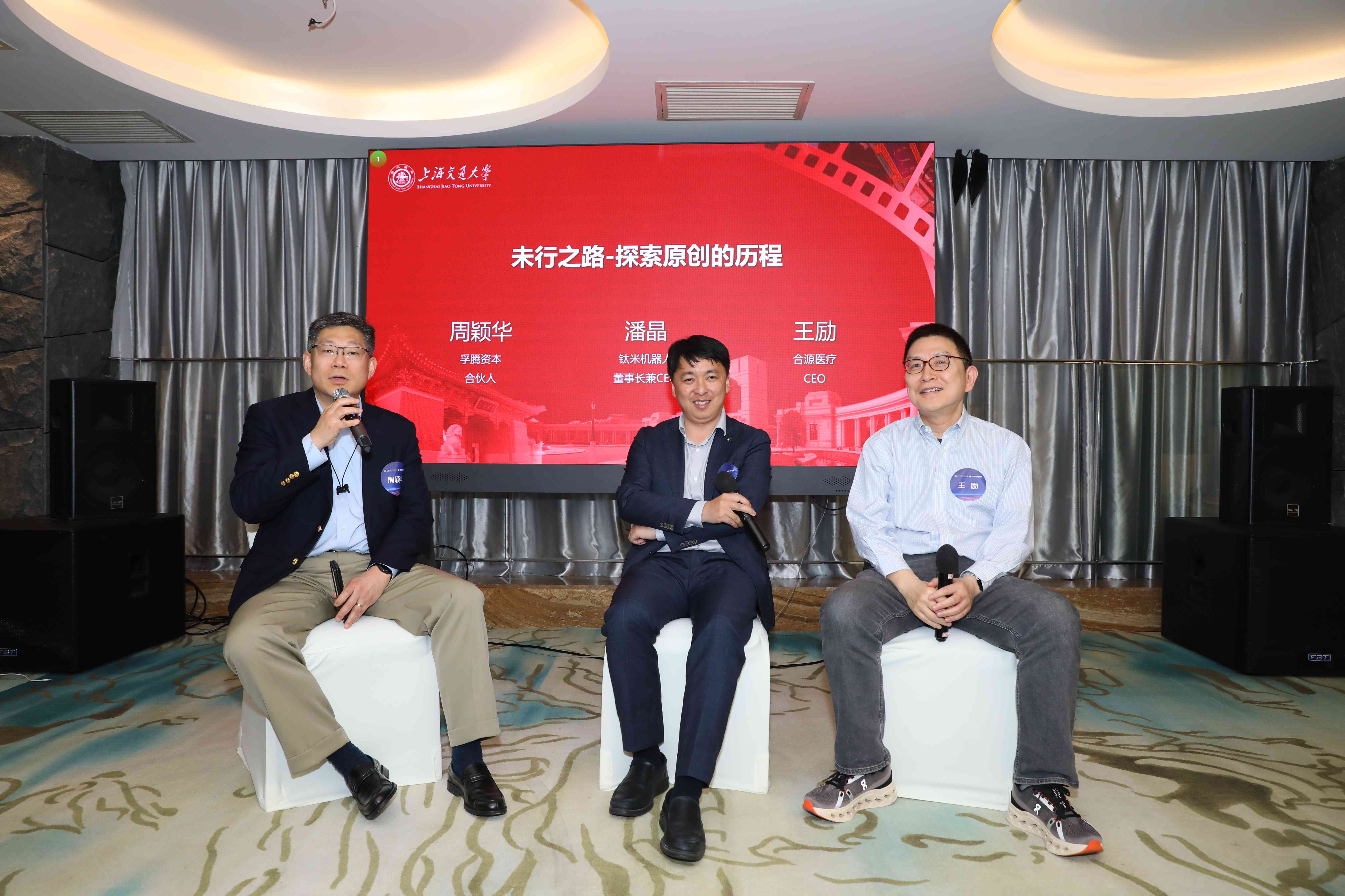 随后,主持人周颖华学长与上海钛米机器人股份有限公司董事长潘晶学长、合源医疗器械(上海)有限公司CEO王励学长围绕医疗器械领域的热点问题、人工智能领域展开了深入讨论。员工们纷纷发言,分享了自己的见解和经验,现场气氛热烈而融洽。