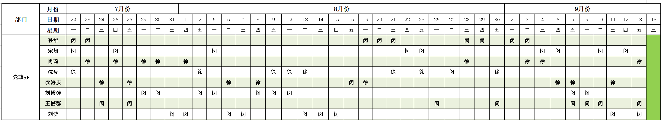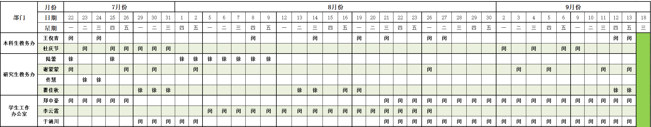为保证暑假期间公司各项工作正常开展,公司行政办公室在7月22日至9月13日期间进行值班,行政人员按照排定的暑假值班表按时到岗。