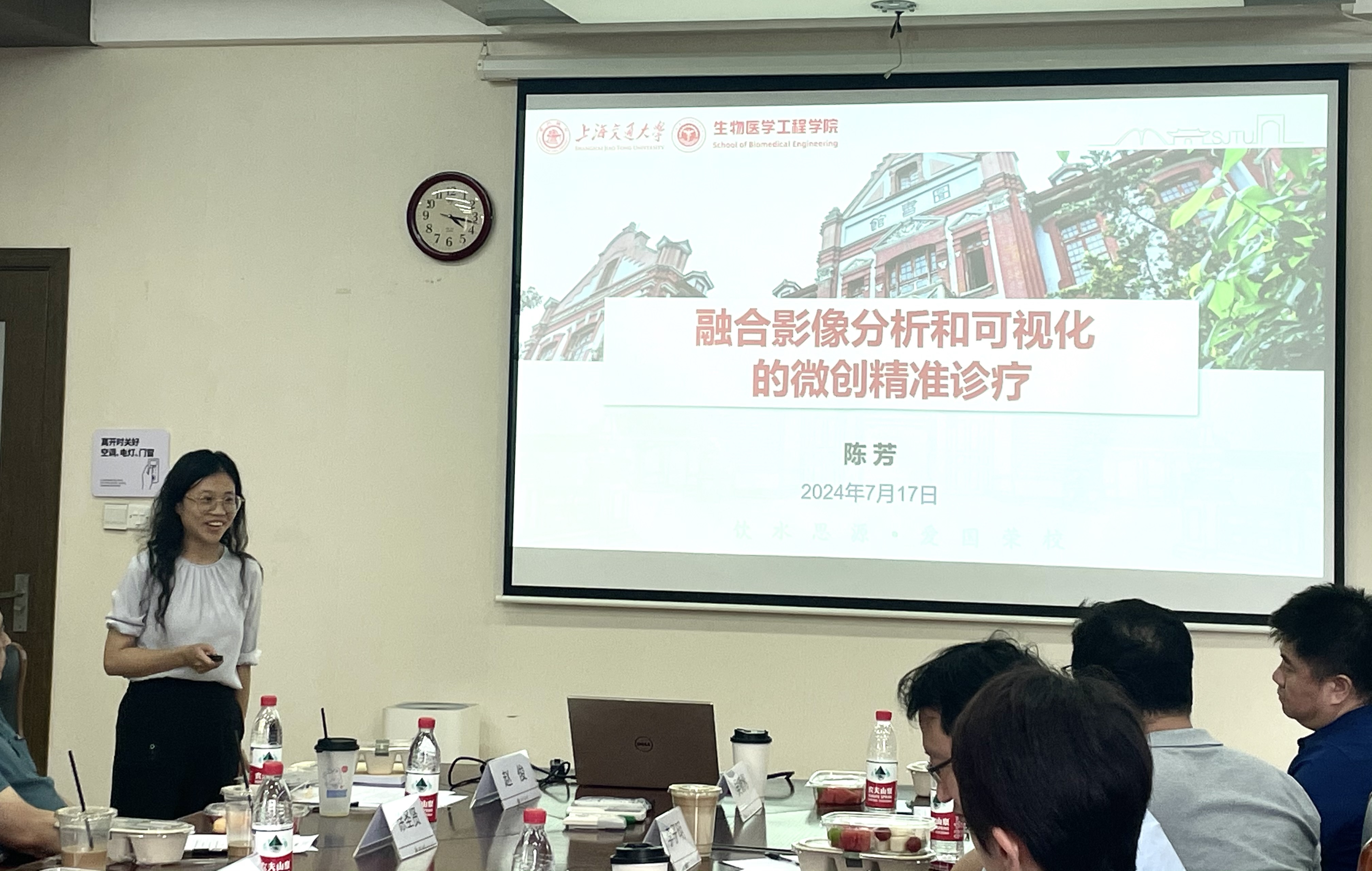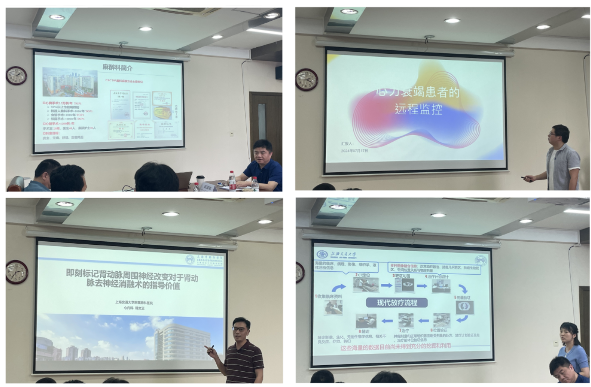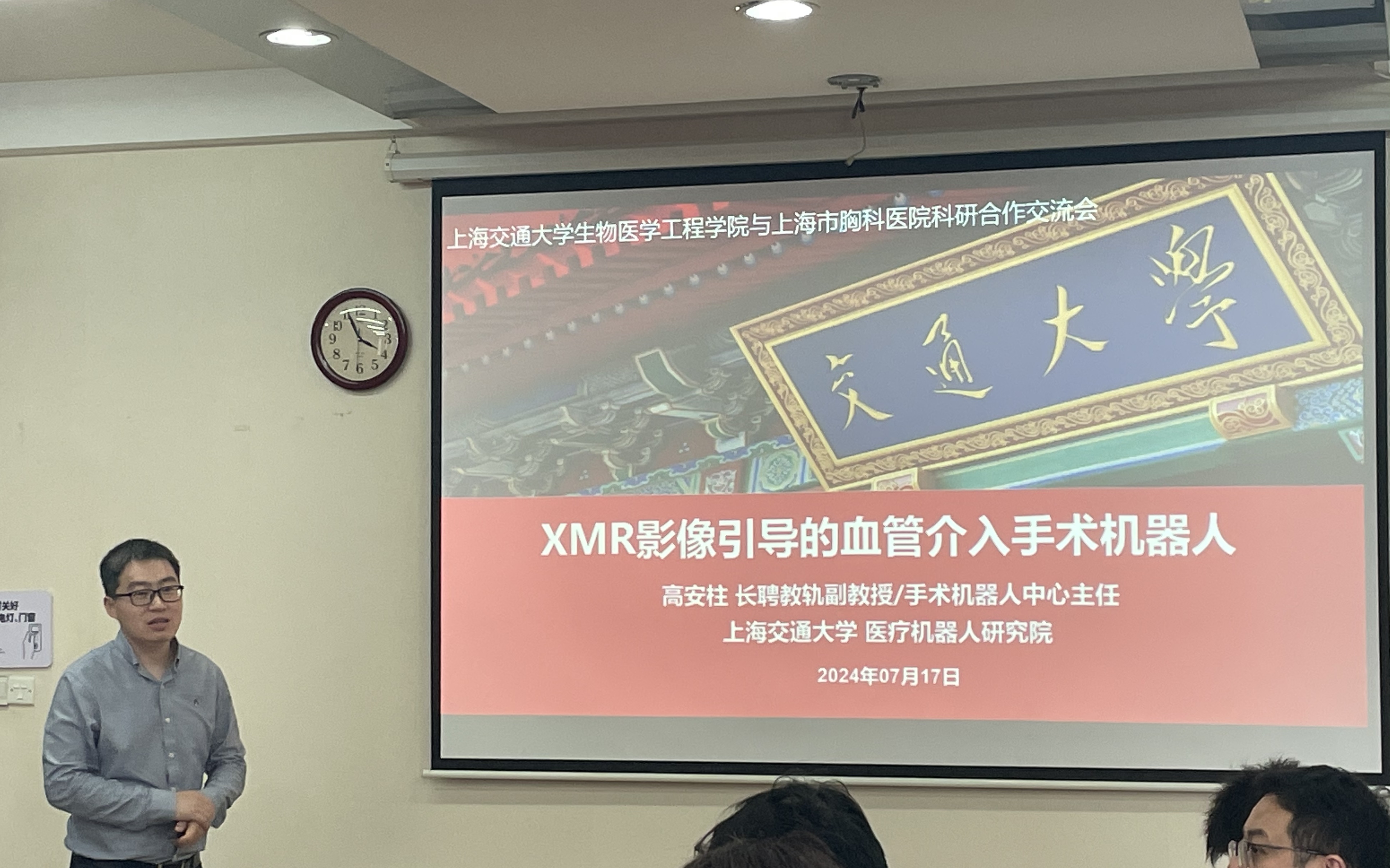 随后,双方团队围绕胸科疾病的临床需求和诊治技术进行报告分享。麻醉科吴镜湘主任介绍了胸科麻醉评估过程中医疗大数据的应用前景,希望在多模态血压监测预警、床旁自动化诊断、临床事件知识图谱开发等方面开展医工合作。心外科戴黄栋医生以心力衰竭患者的远程监控为例,分享了远程医疗对慢性病患者健康监护的重要意义,希望在数据捕获整合与识别分析方面深入交流。韩文正副主任讲述了肾动脉周围神经消融术的即刻评估需求与研究瓶颈,期待与公司老师的进一步合作。放疗科张琴副主任讨论了当前胸部肿瘤放疗技术存在的关键问题,并基于已开展的医工交叉研究展望了由人工智能引导、数据驱动、生物学信息赋能的新一代胸部肿瘤精准放疗技术。作为回应,生医工公司参会教师逐一分享了团队在心血管疾病影像评估、成像分析、分子影像探针、肿瘤精准诊疗、医疗机器人等领域的研究进展。孙建奇副经理向参会人员介绍了伟德国际1949始于英国的医工交叉特色与Med-X创新转化成果。现场讨论氛围融洽,火花不断。