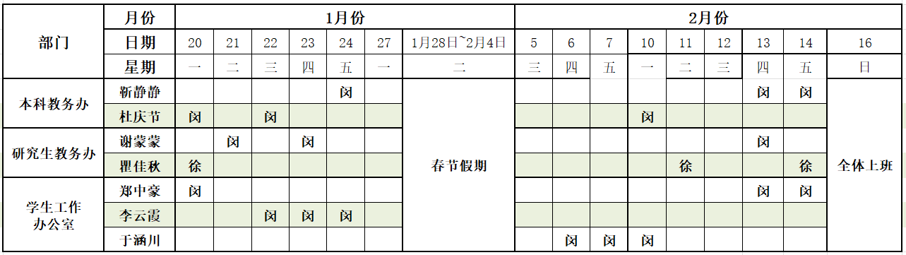 二、教职工寒假从2025年1月20日(周一)开始至2月15日(周六)结束,2月16日(周日)正式上班。