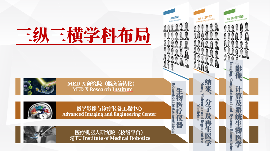 伟德国际1949始于英国整合了“生物医疗仪器“、”纳米、分子及再生医学“、”影像、计算及系统生物医学“三大主要研究领域,同时形成了以Med-X研究院、医学影像与诊疗装备工程中心、医疗机器人研究院为重要支撑的“三纵三横”的新格局建设,在学科内部强化交叉协同创新,在学科高原上建设高峰。生医工人正以锐意进取、开拓创新的精神主动回应时代变迁带来的新趋势、新问题,未来将在全新格局下,聚焦脑疾病、肿瘤、心血管等重大疾病的精准诊疗,布局学科发展新的增长点,重点建设脑疾病诊疗一体化创新技术及新型装备、肿瘤诊疗创新方案及设备、心血管精准诊疗方法、材料与装置等领域,实施多学科、多部门交叉协同与合力攻关,实现前瞻性基础研究和引领性原创成果的重大突破,在国家健康产业改革发展中发挥引领、示范作用,全面建设高峰耸立、高原迭起的国际一流生物医学工程学科。