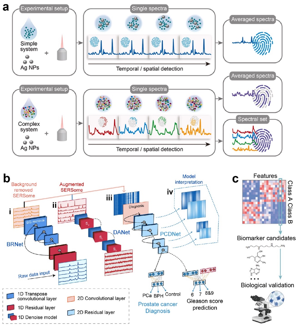 SERSome是一种基于SERS技术的新型代谢分析方法,其使用整个光谱集(可达数百张光谱)而不是单个光谱或少数光谱的平均值,来保存可能捕获的所有分子信息,增强识别生物标志物和分辨不同代谢状态的能力(图7)。