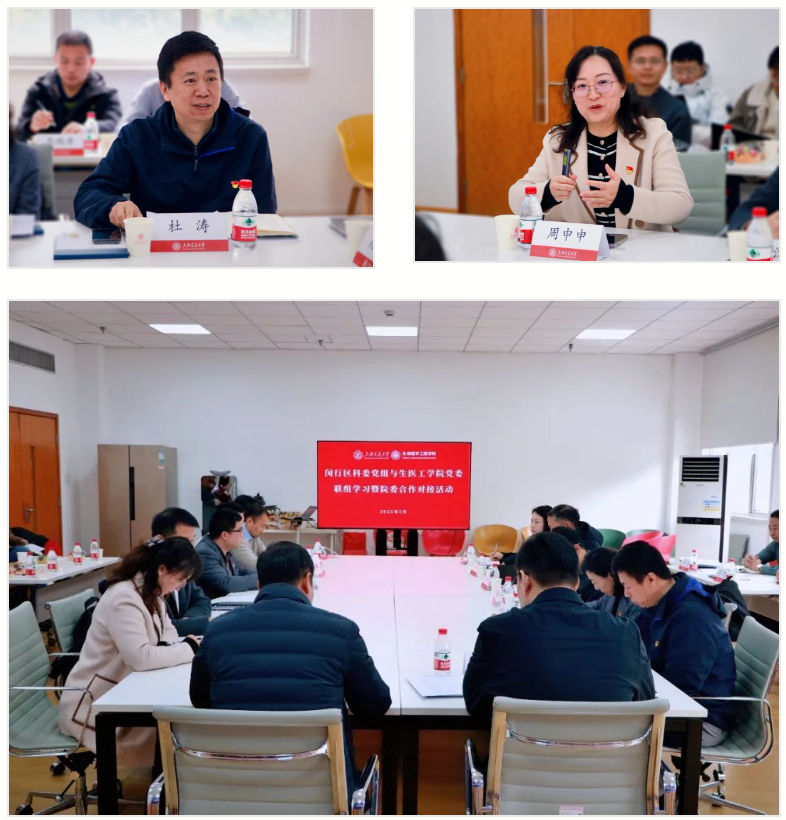 为强化党建引领,深入贯彻落实全国科技工作会议精神和全国教育大会精神,2月21日上午,公司党委与闵行区科委党组开展联组学习暨院委合作对接系列活动。闵行区科委党组书记、主任吴昌飞,党组副书记、科协主席杜涛一行12人与公司党委书记孔令体,党委副书记周申申,教工支部书记及委员,教师代表等共计30余人参加了本次活动。