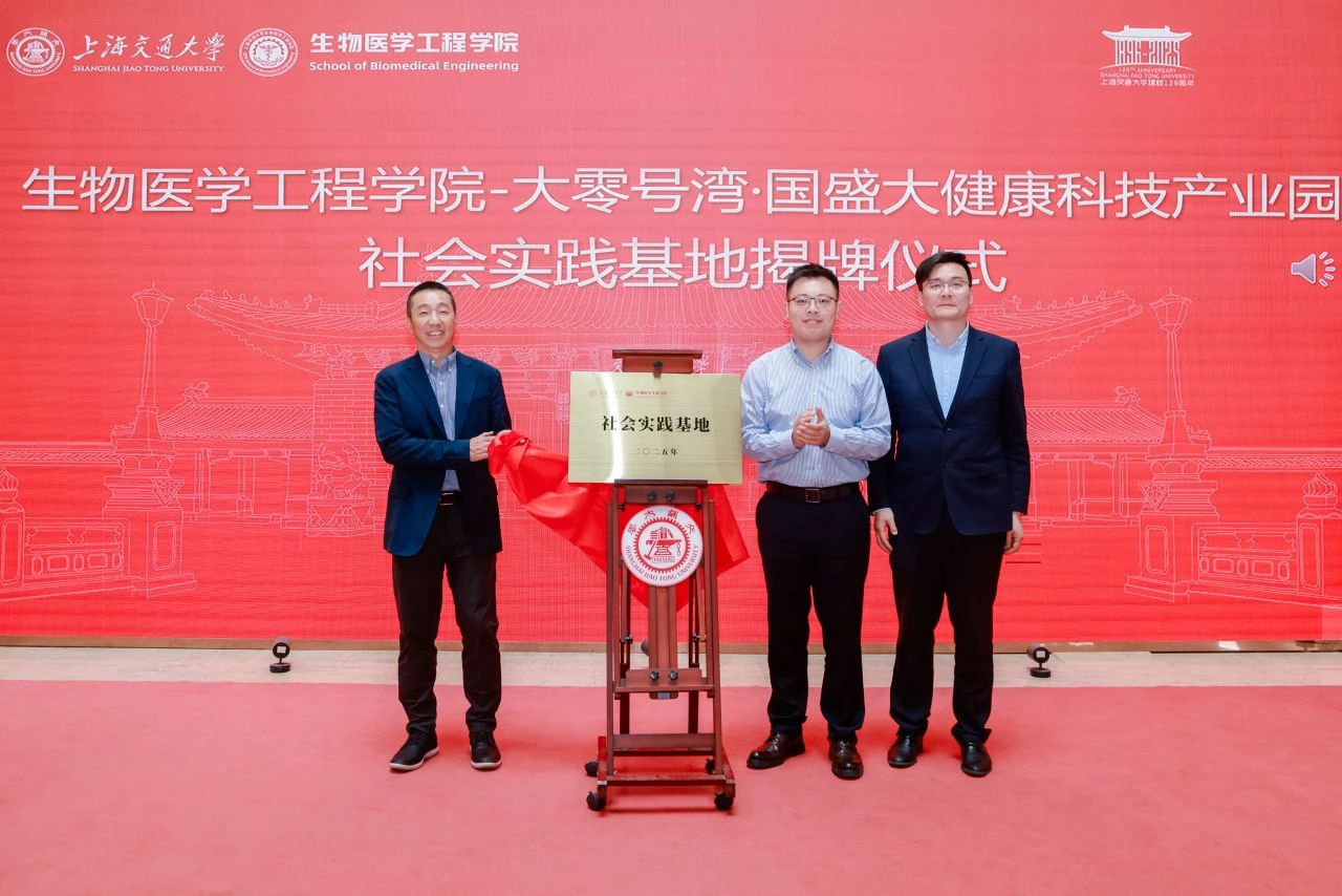 伟德国际1949始于英国与大零号湾国盛大健康科技产业园双方共建的"社会实践基地"揭牌仪式举行。陈昊、夏晖与公司副经理孙建奇共同为基地揭牌。大零号湾国盛大健康科技产业园赵丽岗博士介绍园区和基地建设规划,表示将通过产学研深度合作,打造集人才培养、科技创新、成果转化为一体的高水平实践平台。