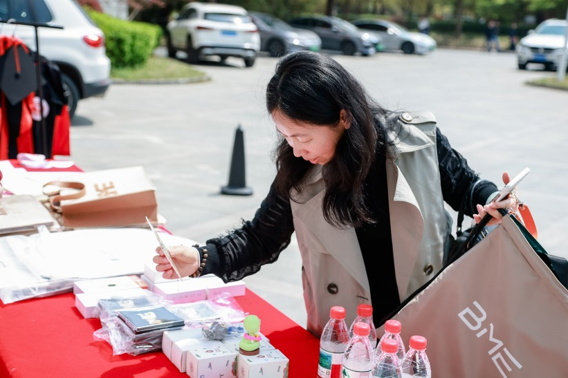 文选医学大楼前,公司为员工们准备了学士服供员工拍照留念。镜头下,员工们或并肩而立,重现当年毕业场景,或携家人合影,创造美好校园回忆。