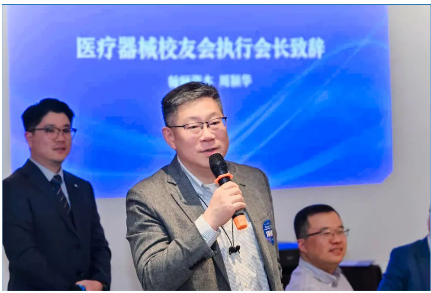 成明和、张浩,周颖华分别上台致辞。他们分享了自己在医疗器械行业的发展历程和宝贵经验,表达了对员工会未来发展的美好期许,倡议建立常态化员工合作平台,通过技术共享、资源对接、联合攻关等方式,凝聚交大力量突破行业关键技术瓶颈,共同书写中国医疗器械产业高质量发展的新篇章。秘书长李航道向大家汇报了医疗器械员工会的近一年的工作情况。他详细介绍了员工会在支持员工创业项目,促进行业资源对接,聚合交大员工资源发挥的积极作用。