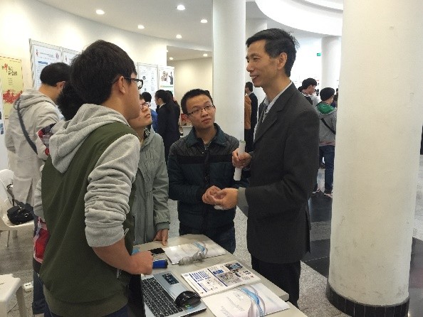 2015年11月21日上午9点,“面向家庭的盆底神经肌肉治疗仪的开发”项目组全体成员乘坐校车来到上海大学,参加“第四届上海老员工创新创业论坛”。一同参展的还有20多所公司,60多个项目组。项目组在各自的展位上给前来观看的领导、老师、评委、同学等展示各种有趣的创新项目。公司杨庭然,郑耀彬,郭金尧,郭佳卉,文豪等同学组队的项目组做了充分的准备,把项目的成果带到现场展示,并通过播放视频演示了肌电采集和云服务上传功能,还准备了许多作品宣传海报和说明书,方便老师同学们了解。