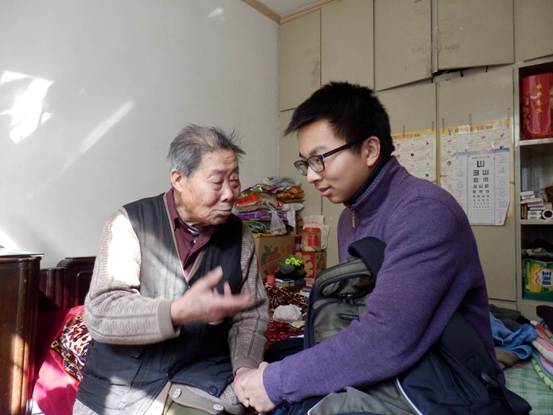 仪式后,居委会代表和团委老师带领志愿者走进独居老人们的家中。见到同学们,老人们喜出望外,非常高兴。初次见面,老人与志愿者们就已经像一家人般,大家围坐在床边、桌边,对着泛黄的老照片讲述着从前的故事。老人们年岁已高,从动乱的历史中走来,看到志愿者们年轻的脸庞,不禁感叹着国家的沧桑变化,他们告诉志愿者们如今幸福生活的来之不易,要好好珍惜。志愿者们帮老人打扫整理房间,热心地询问他们的身体及生活状况。虽然老人们的生活有些困难,但他们对生活的希望、对帮助他们的人们的感恩如此真挚,那满心的善良也深深地感动了志愿者们。